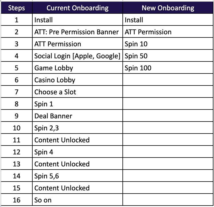 There is a never-ending list of screens to complete 100 spins. We can redesign the new onboarding by removing all unnecessary screens, even postponing login to the second session.